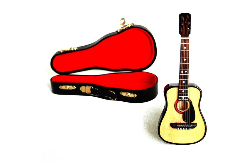 Miniatura kytara klasická sunburst dřevěná v pouzdře 14 cm